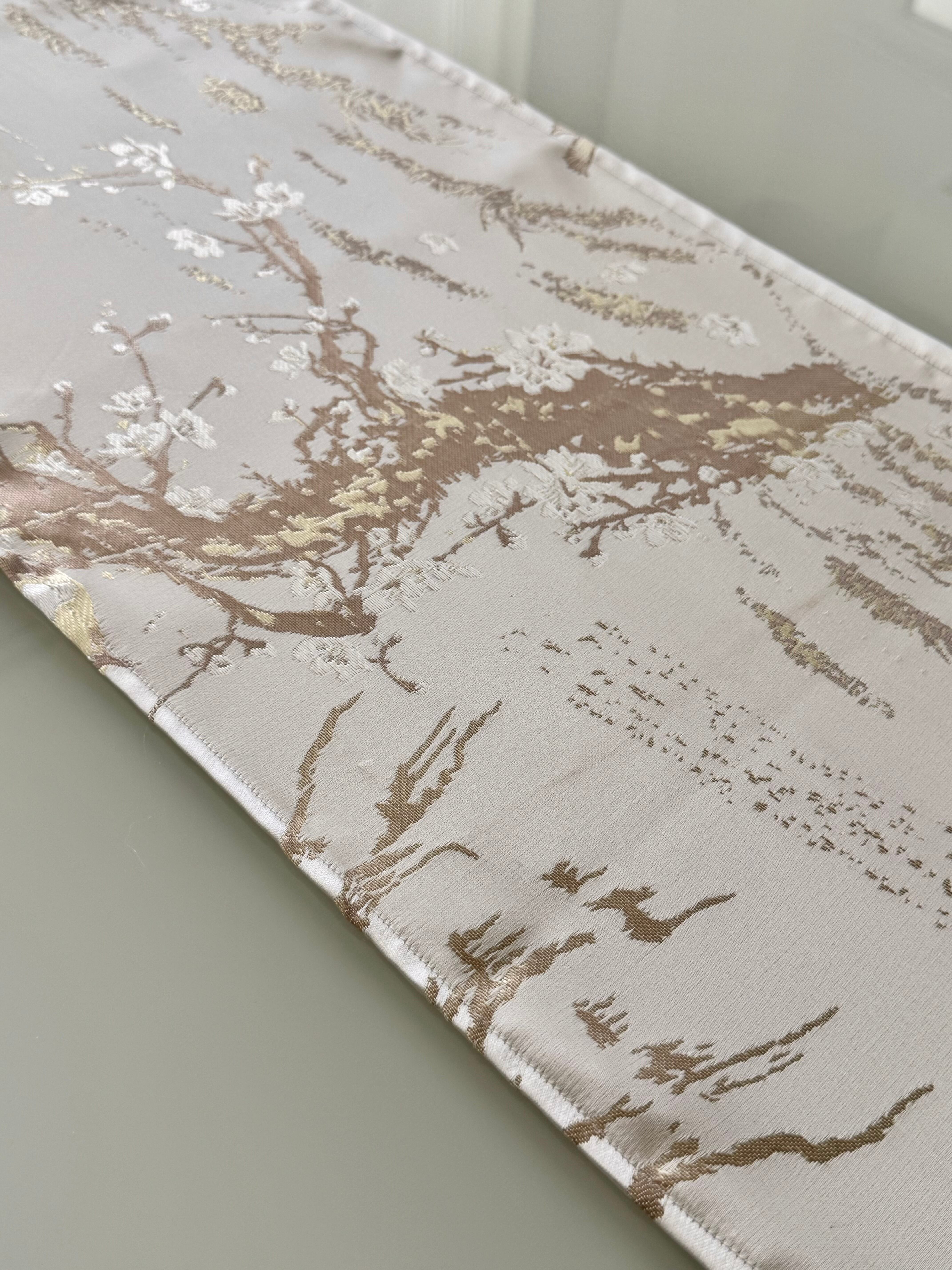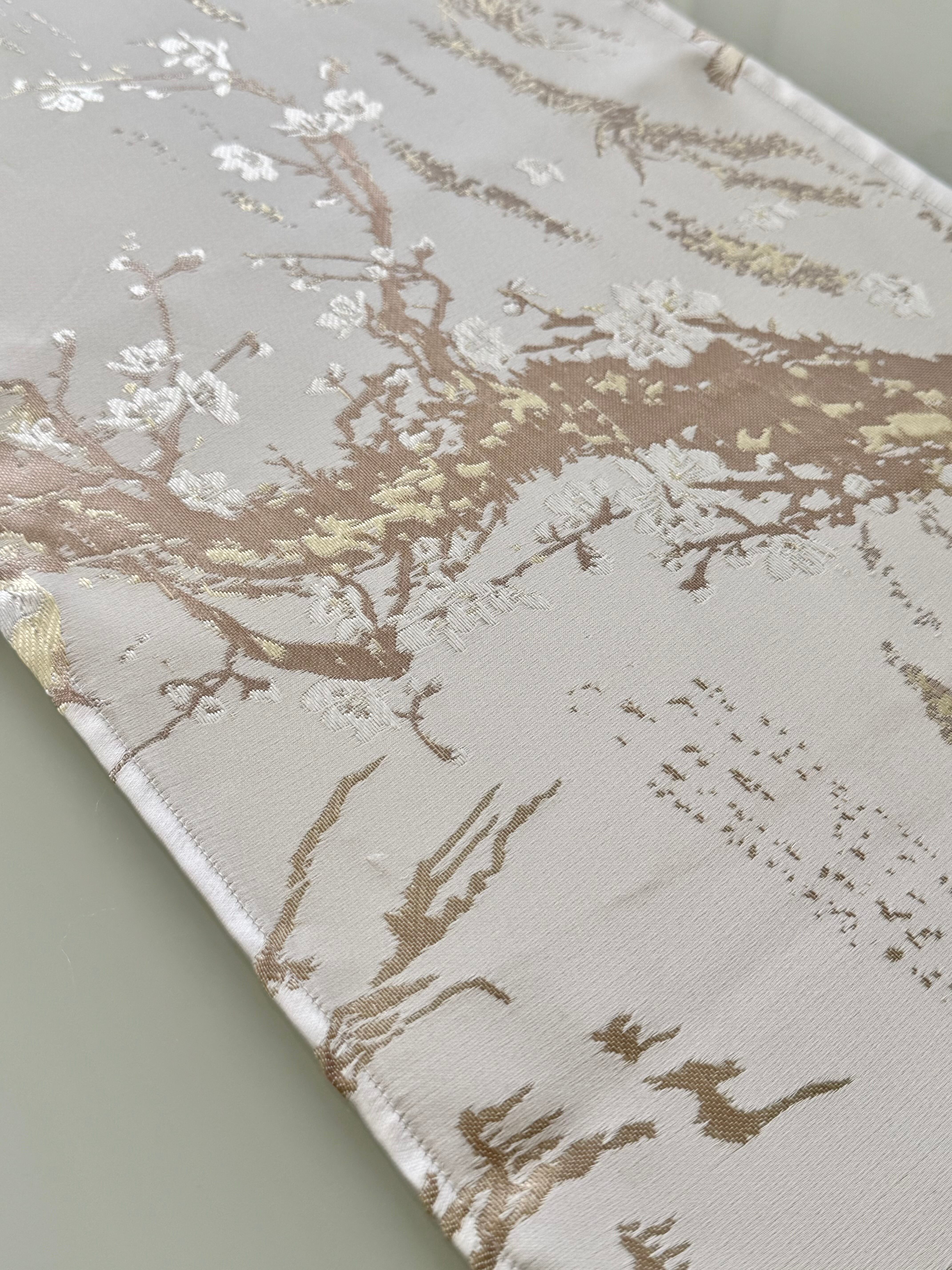 ベトナムで仕入れてきた、高級感のある生地で作ったテーブルランナーです。