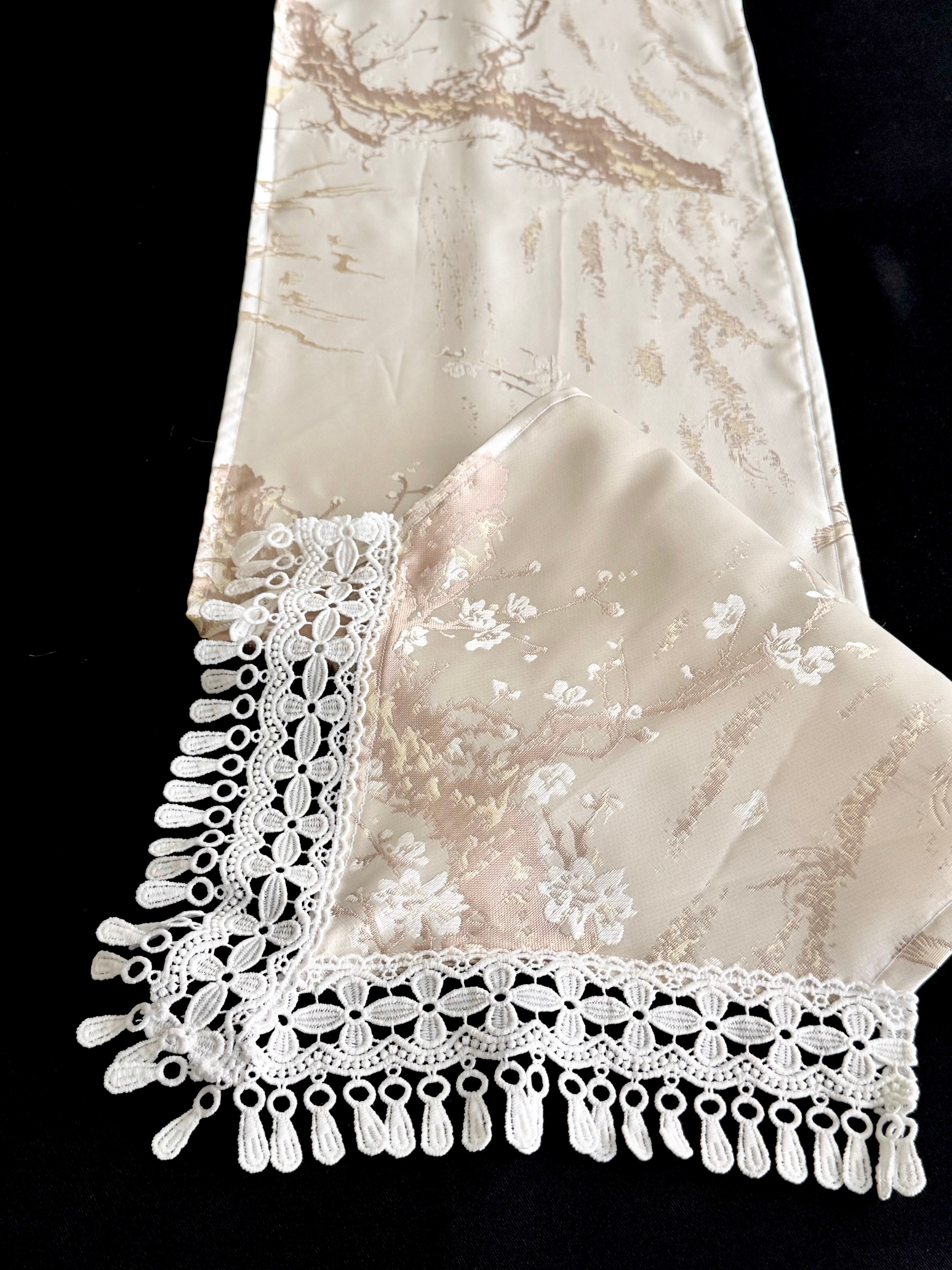 【テーブルランナー】ベトナム生地ベージュレース(29 × 175 cm)