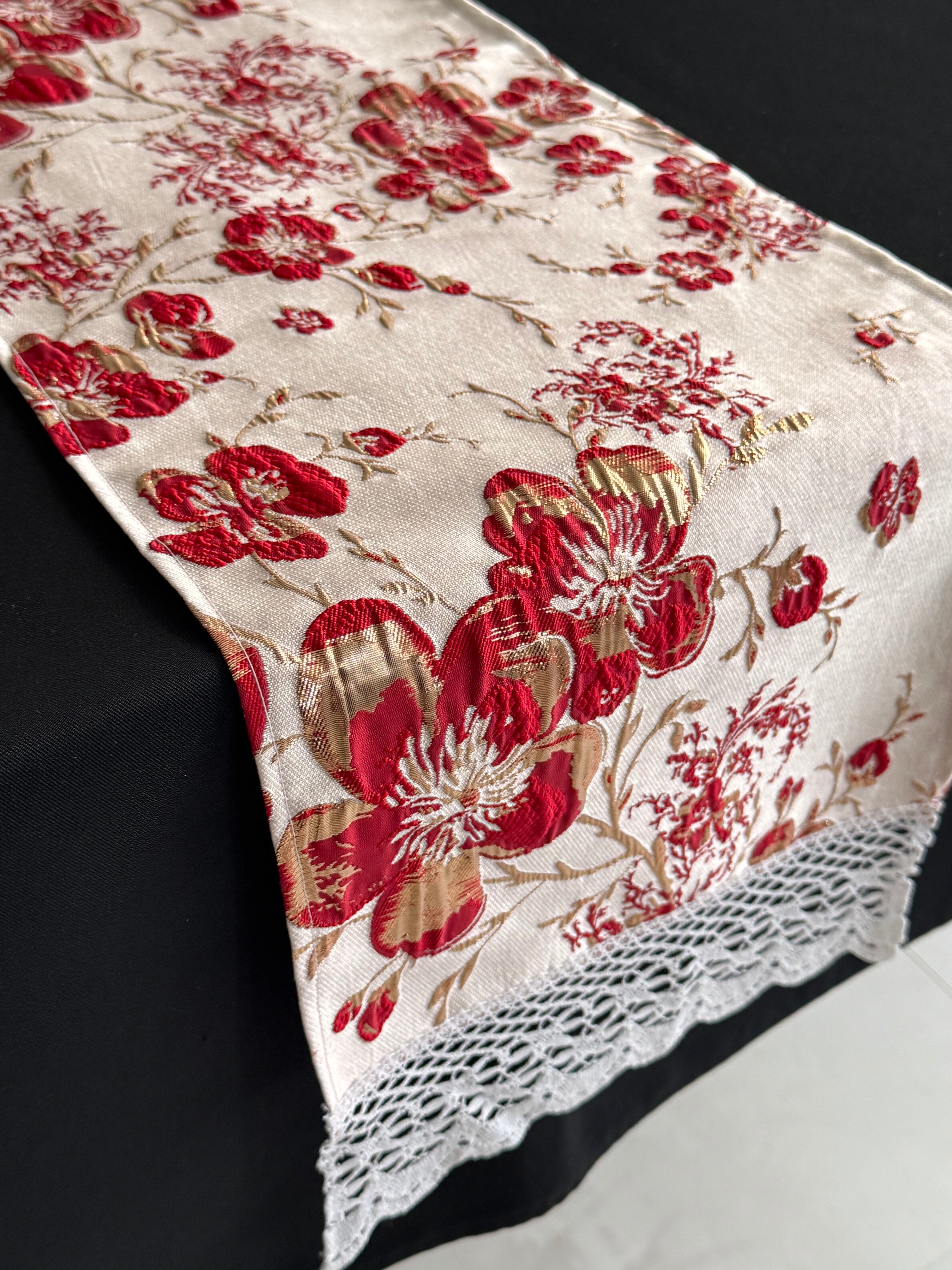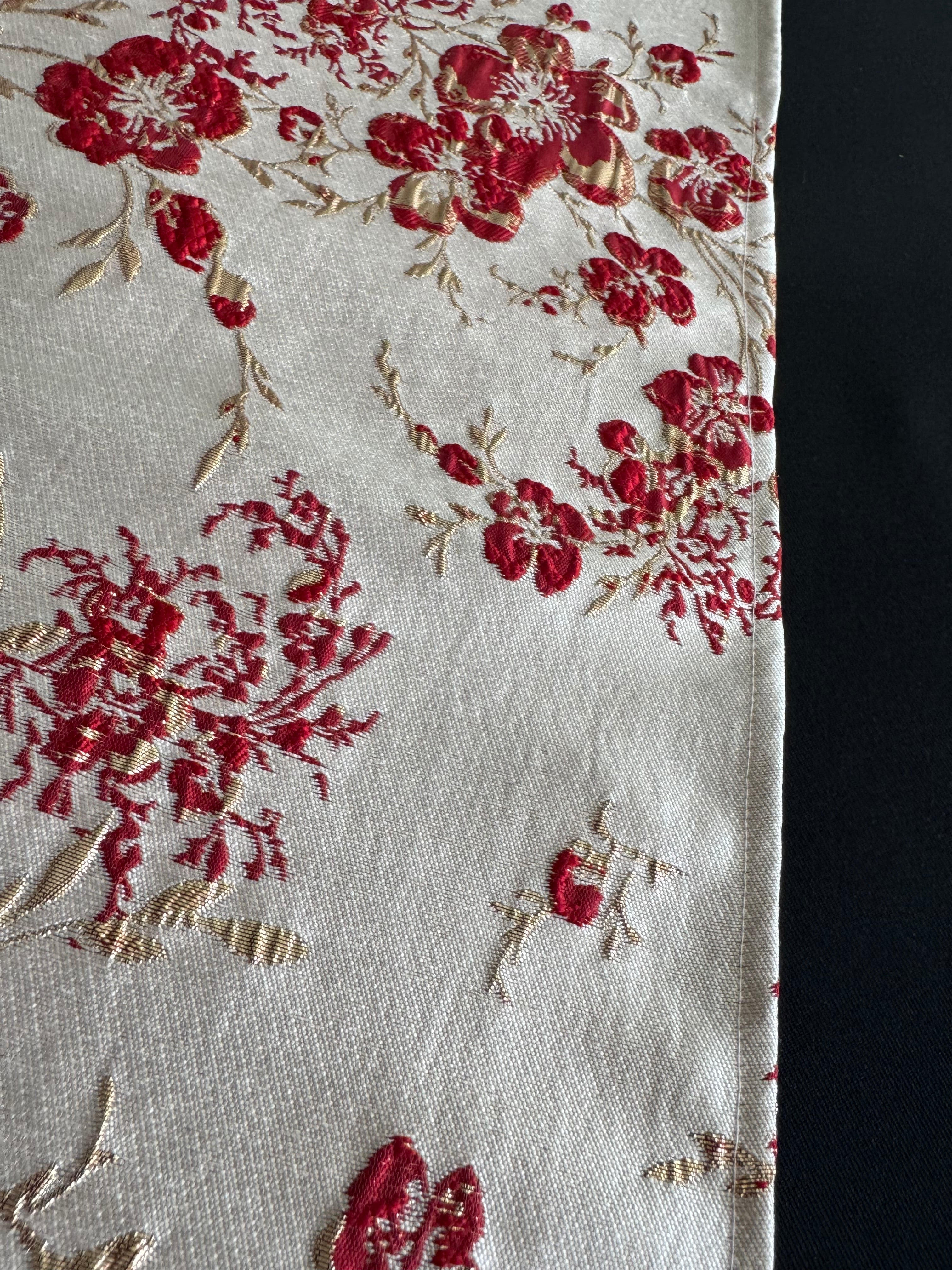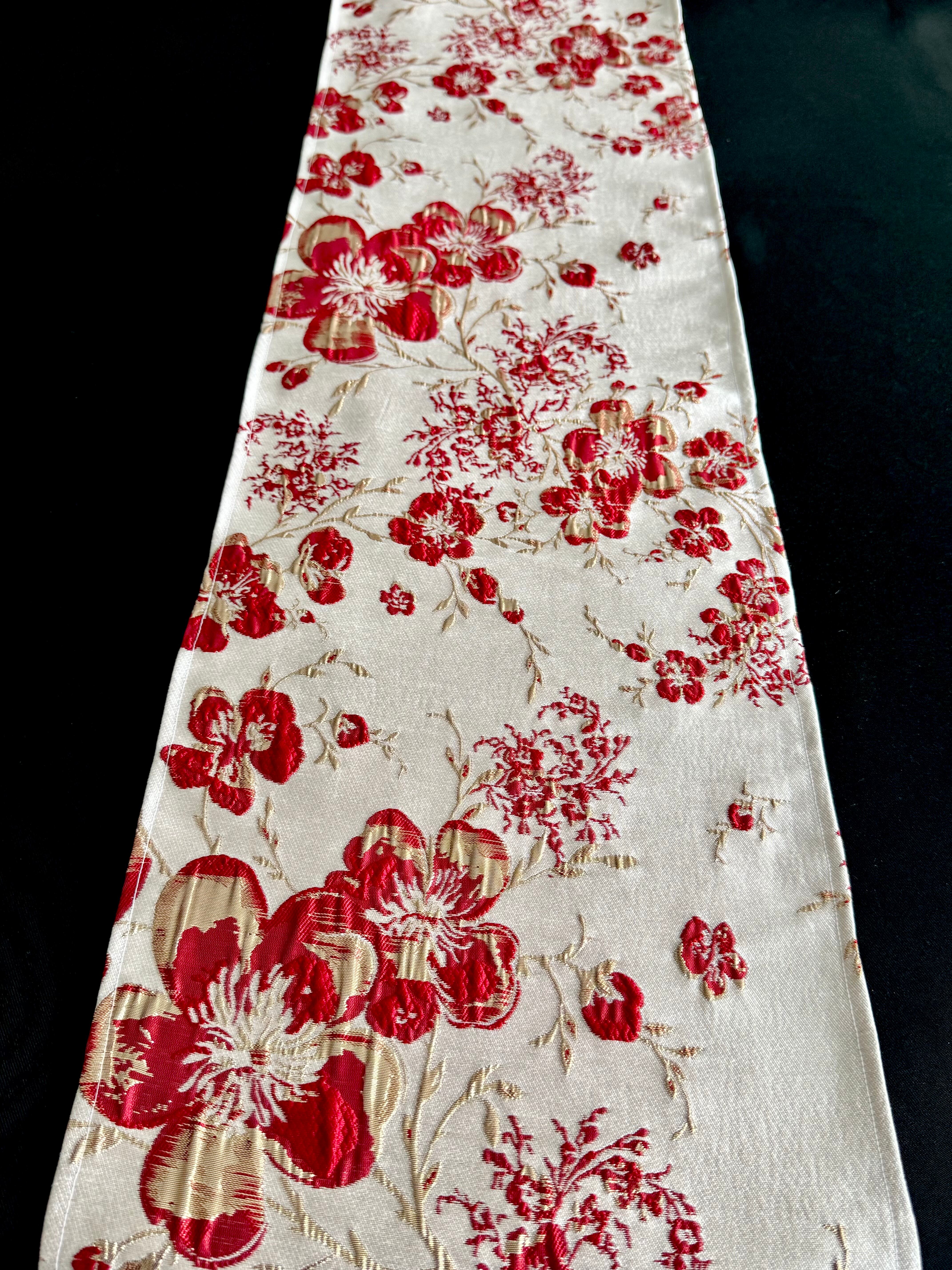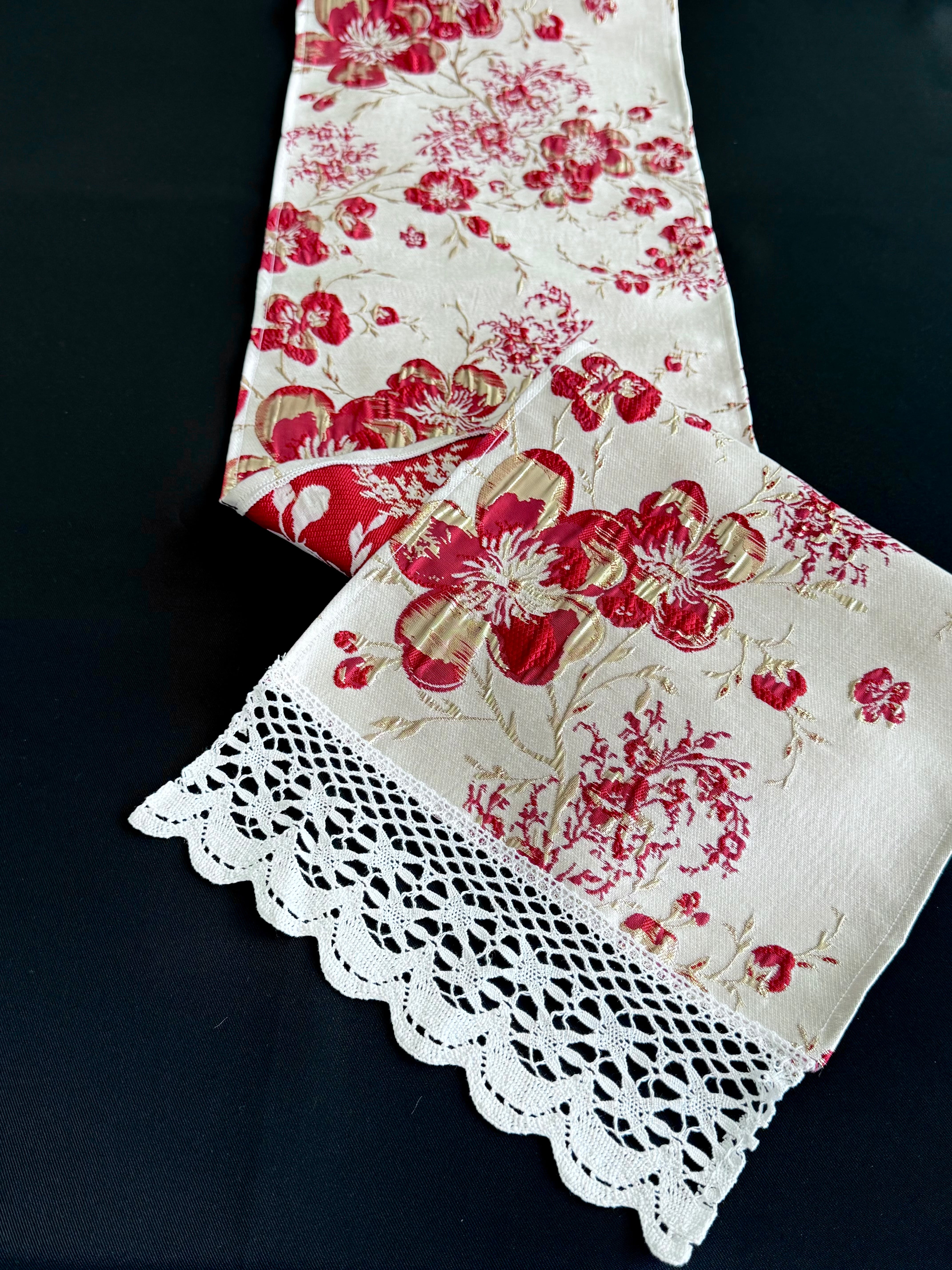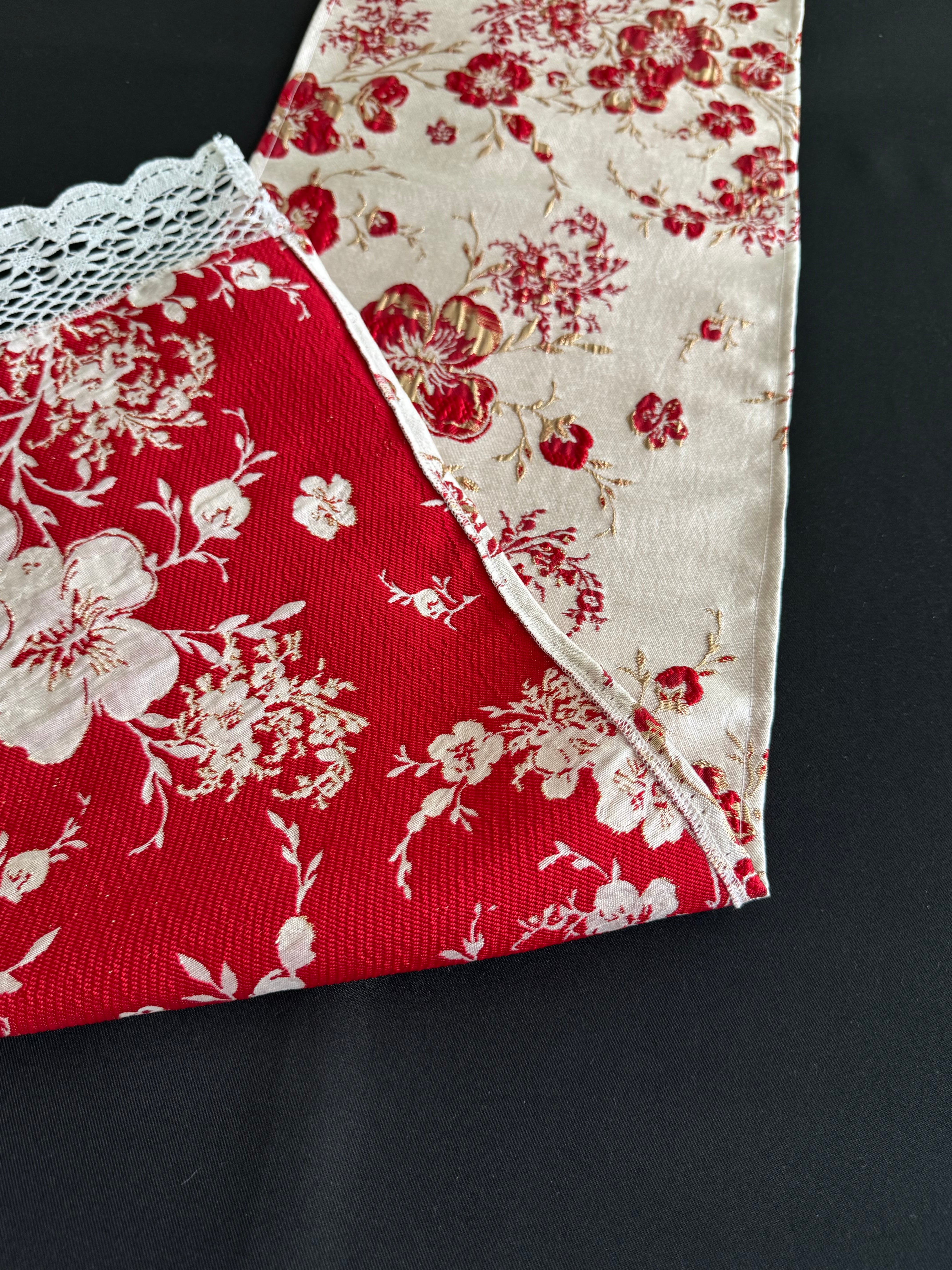 【テーブルランナー】ベトナム生地フラワー赤(26 × 215 cm)