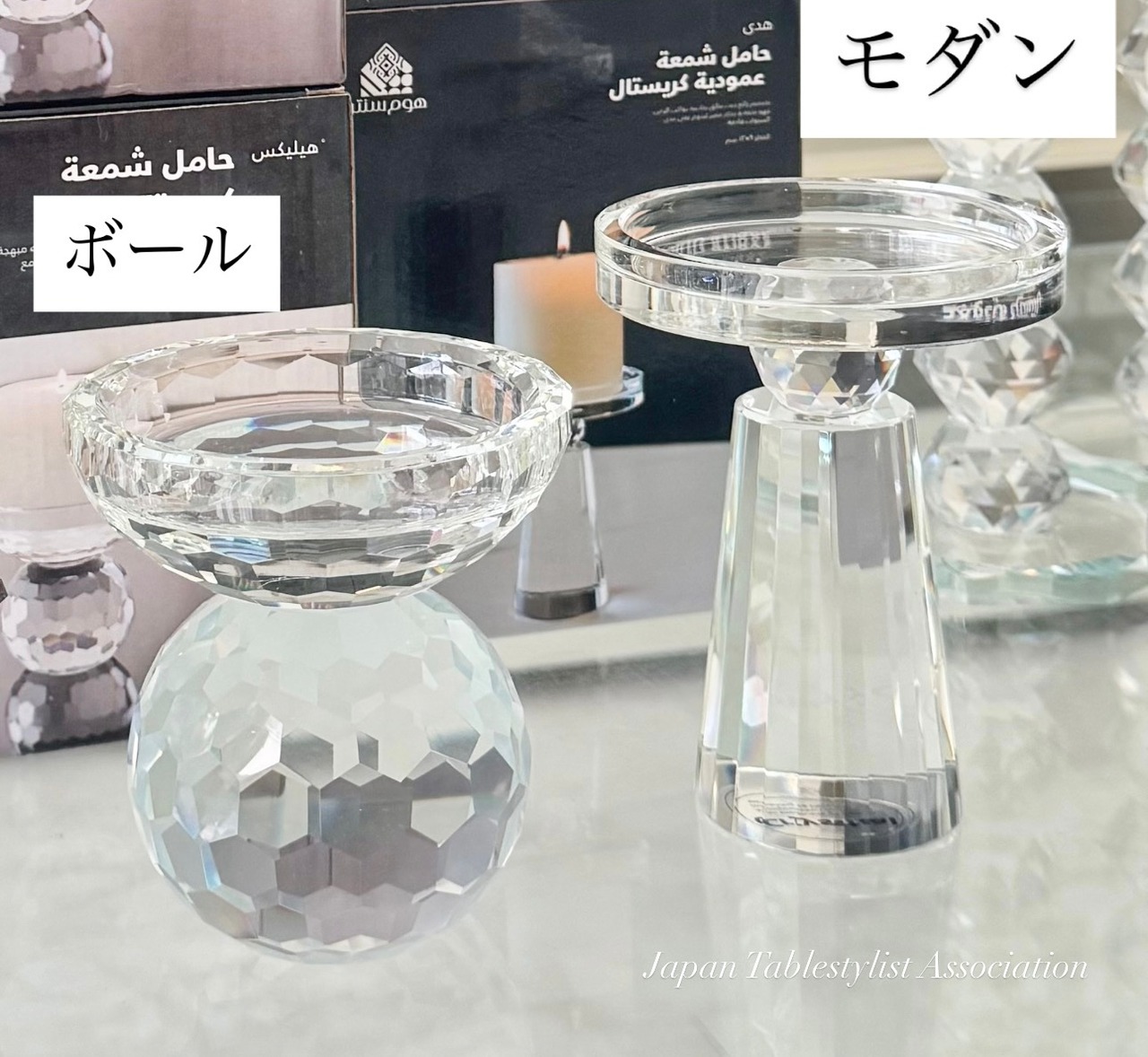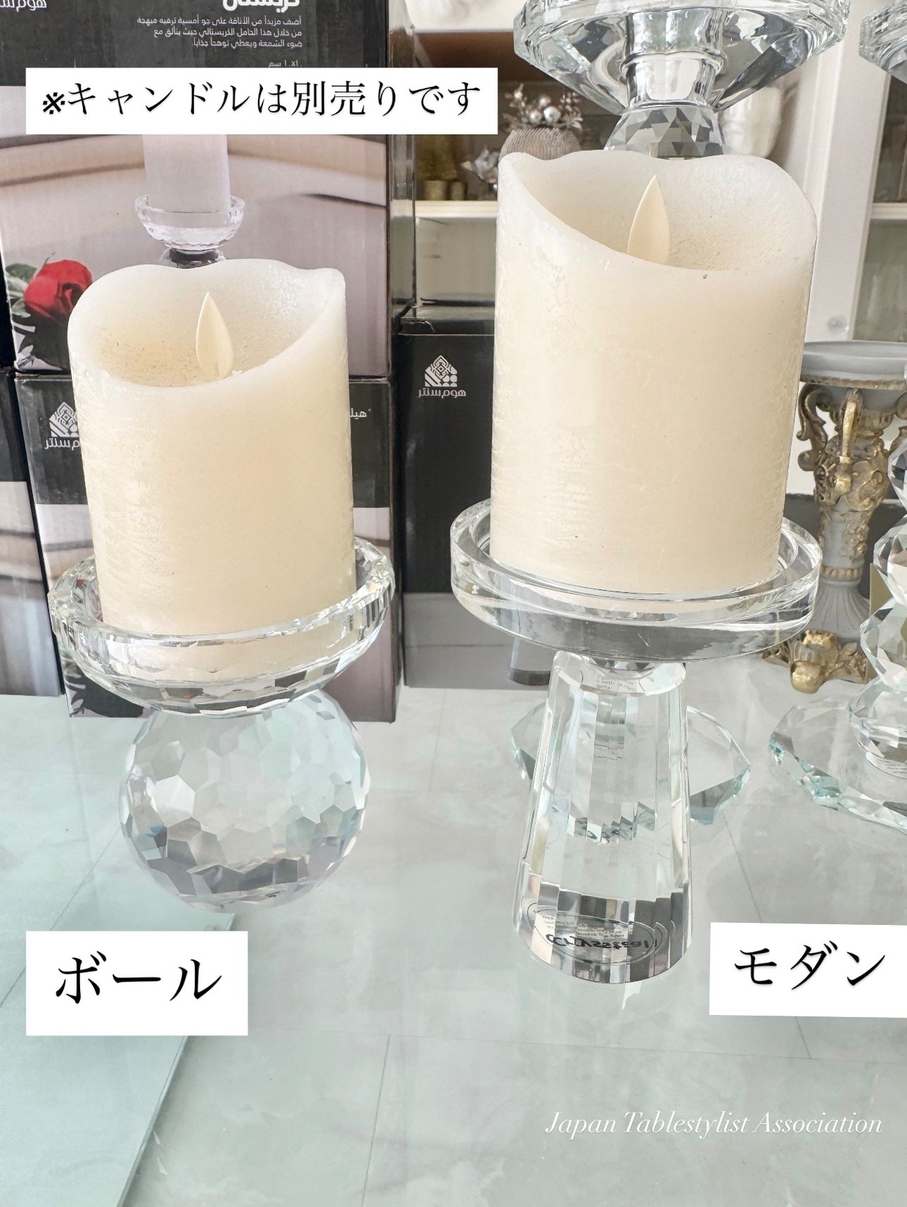 ドバイで購入してきたクリスタルのキャンドルスタンドです。その美しさに一目惚れして、自分用にも購入しましたが、数個だけショップ用にも購入してきました。