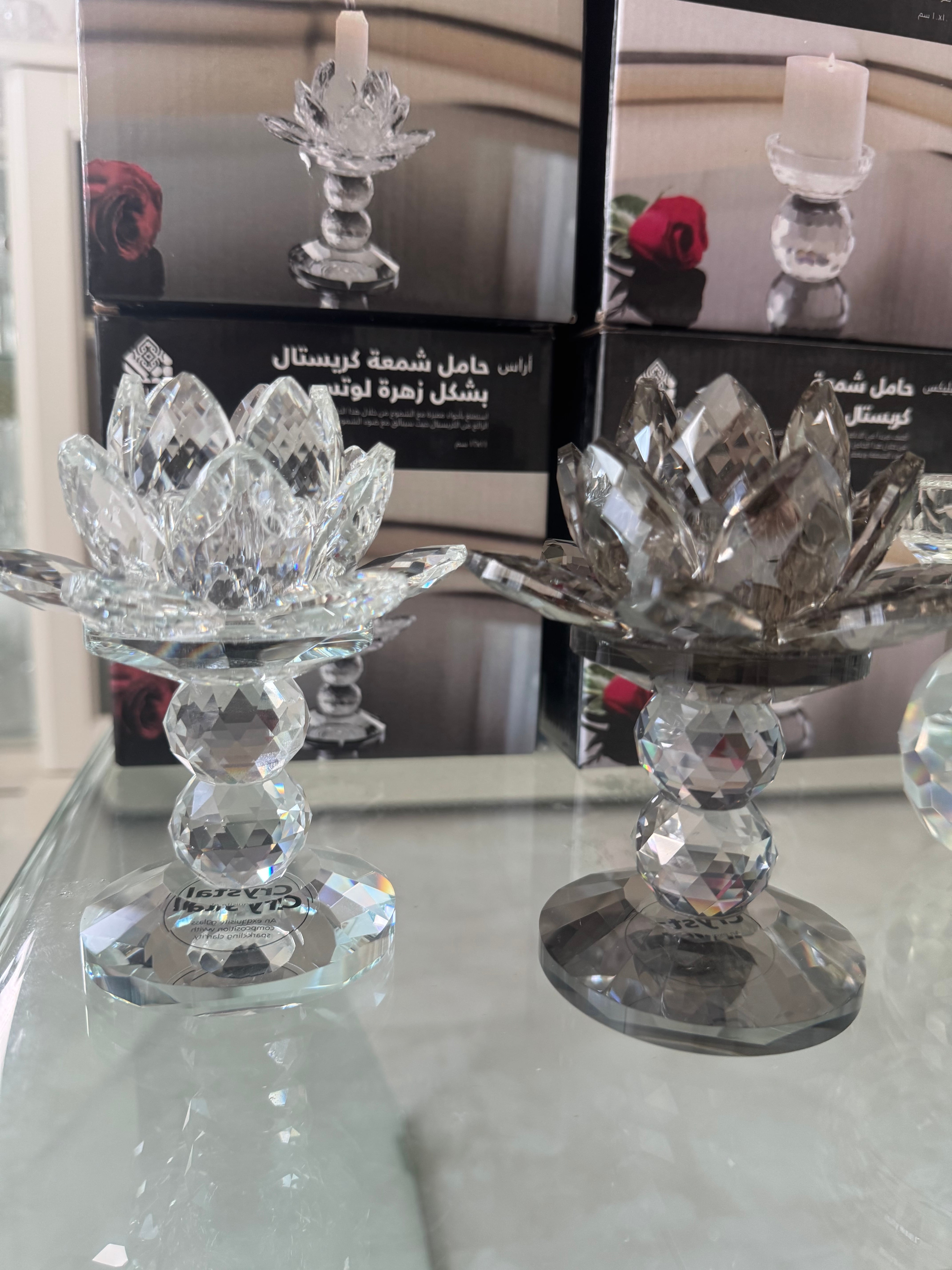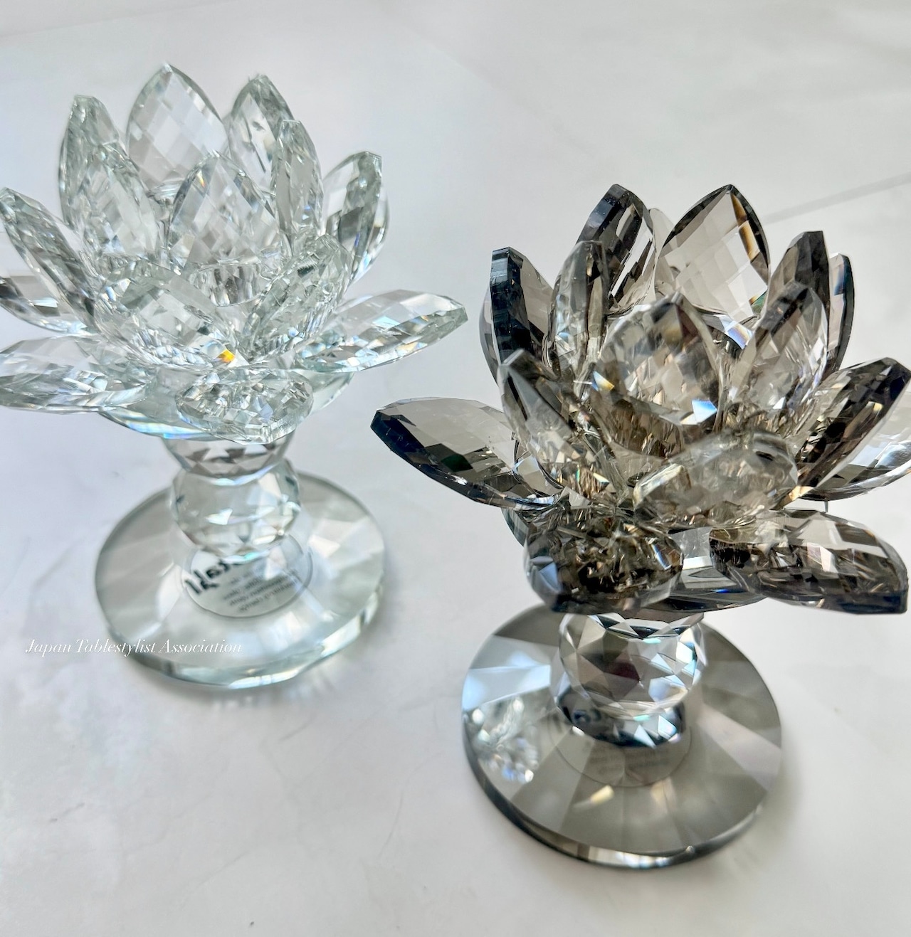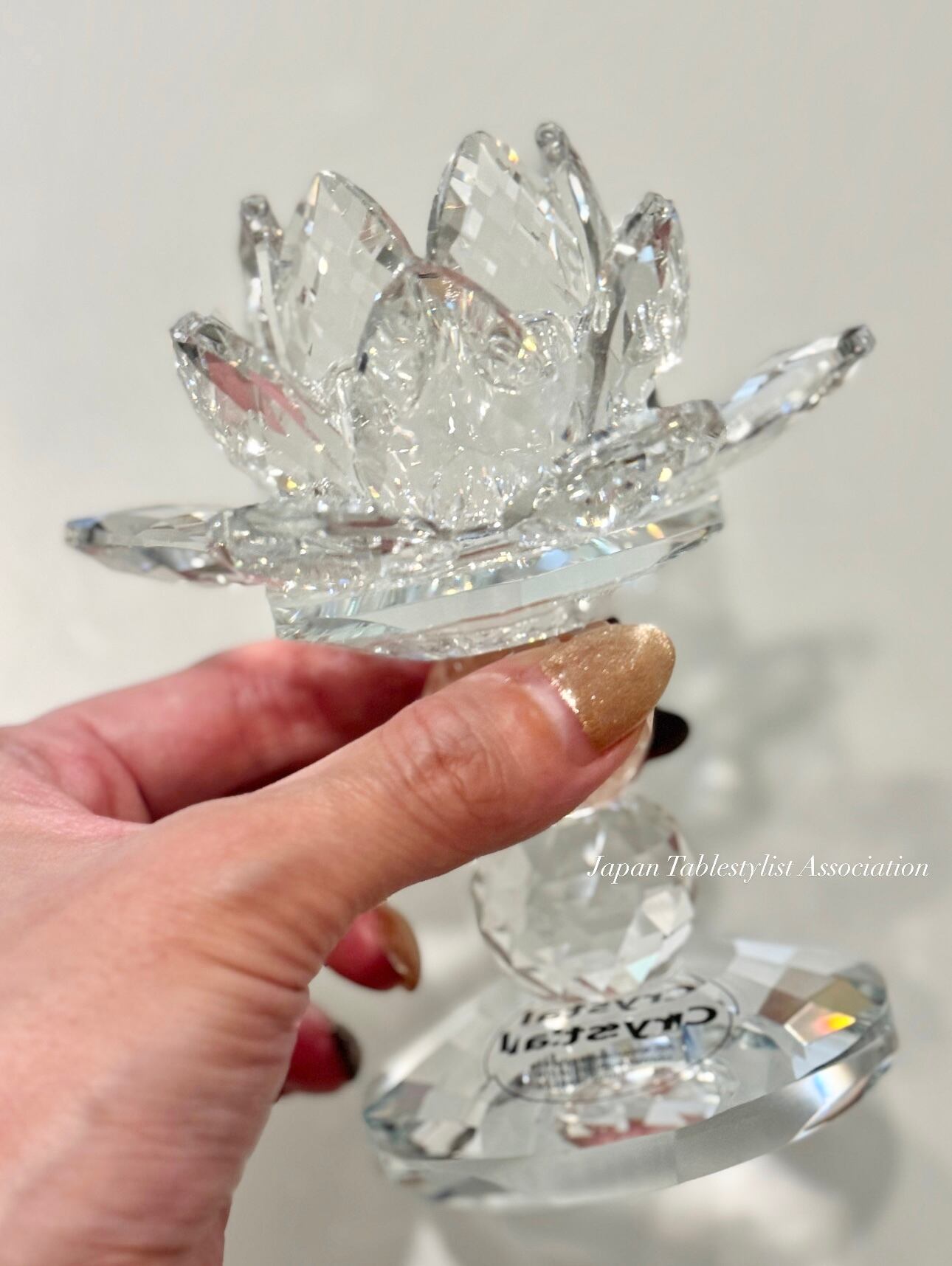 ドバイで購入してきたクリスタルのキャンドルスタンドです。その美しさに一目惚れして、自分用にも購入しましたが、数個だけショップ用にも購入してきました。