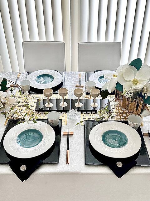 シルバーとゴールドのカラーで、シノワズリーモダンなイメージになります。